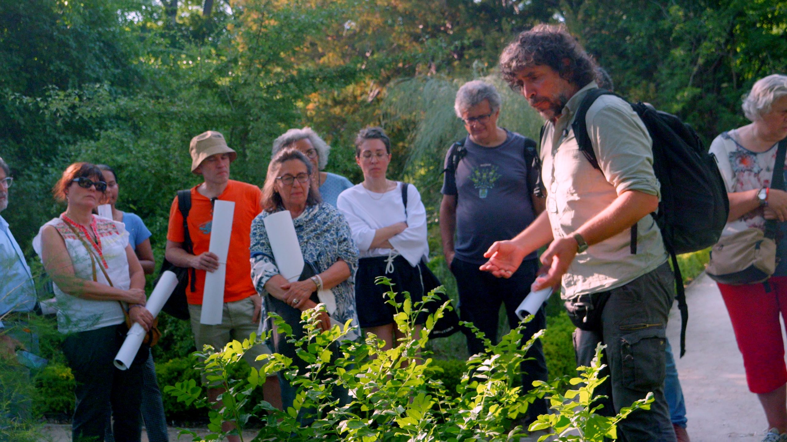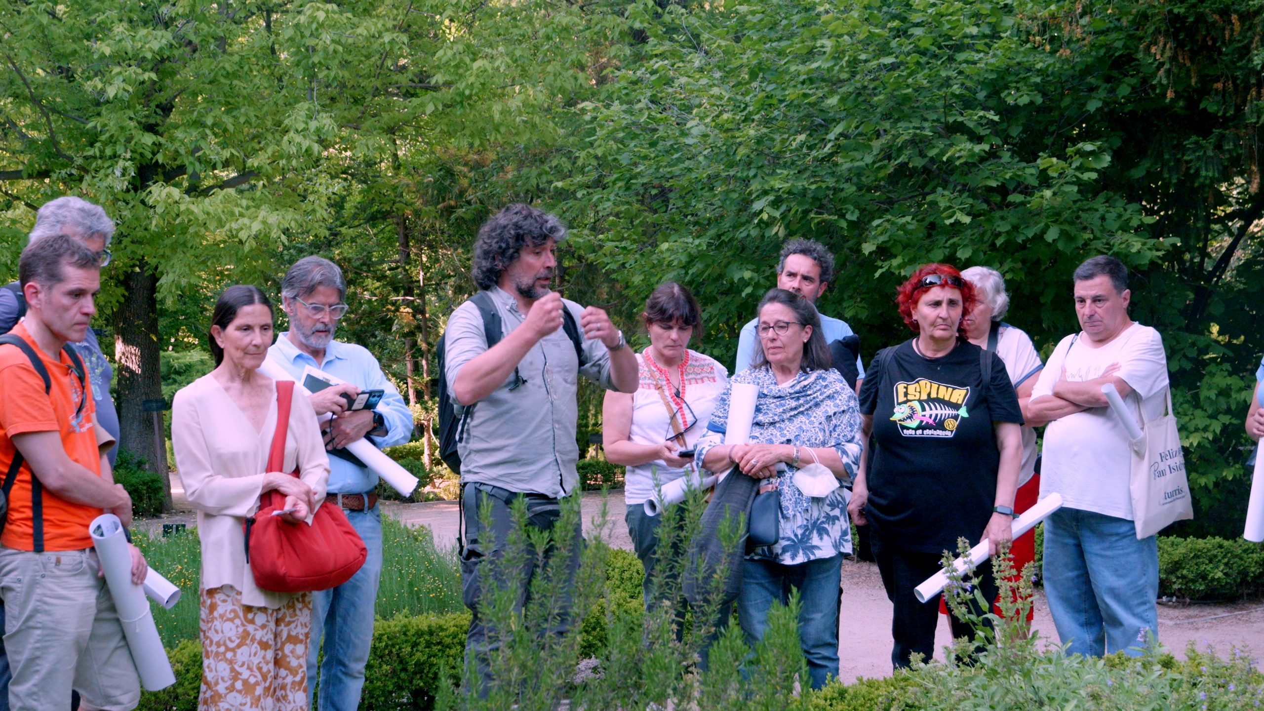 El autor de la guía, José Borrell Brito, acompaña a uno de los cuatro grupos de la visita guiada por el Real Jardín Botánico tras la mesa redonda.